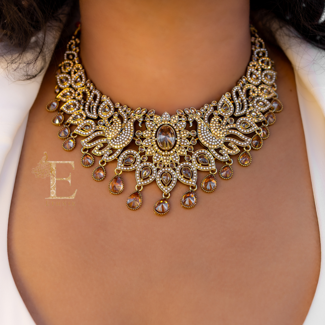 The Mayura Set honours the peacock, India’s national bird and timeless symbol of grace. Its kundan craftsmanship and feather-inspired motifs reflect heritage artistry seen in palaces and paintings.