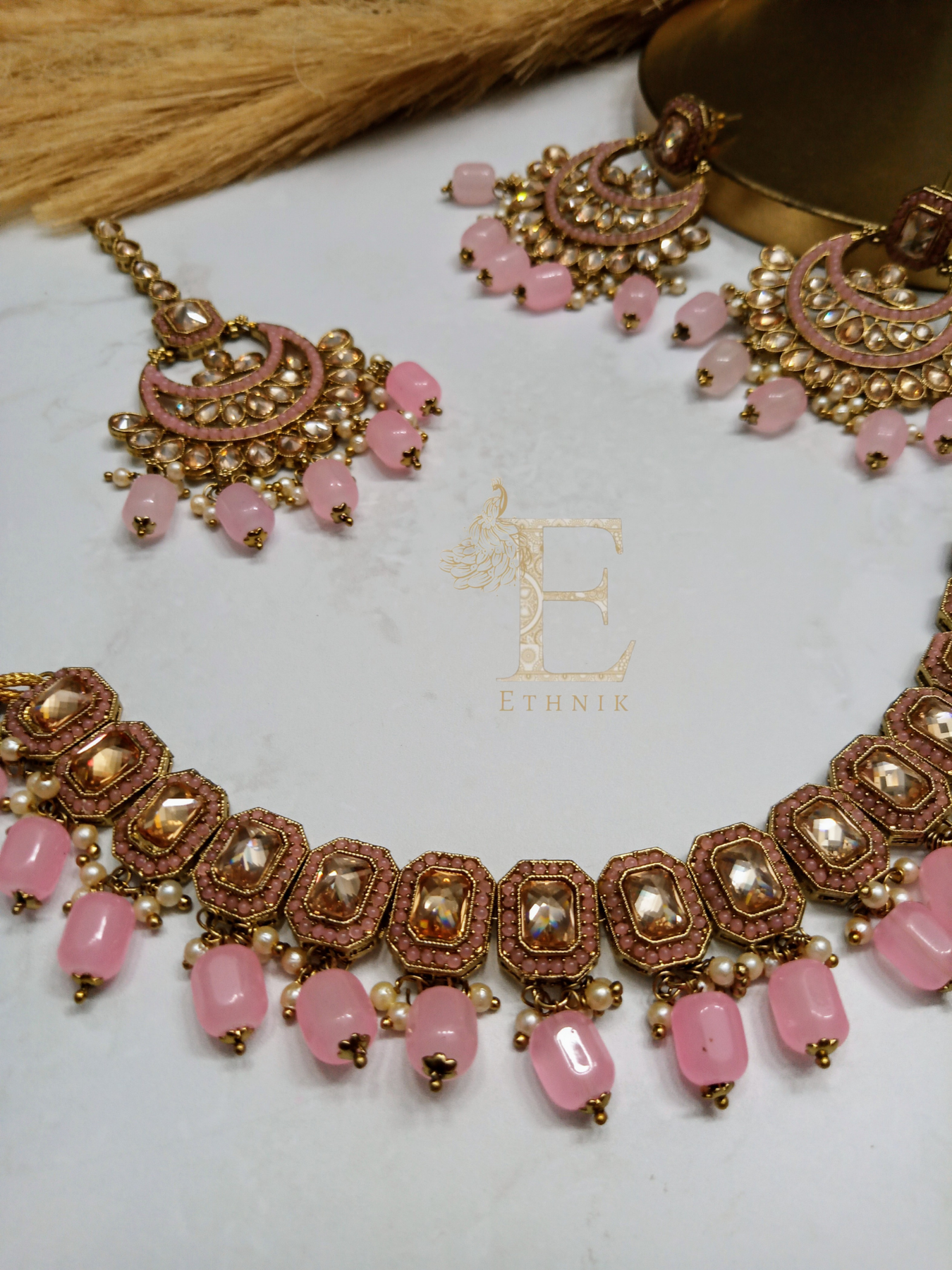 Elevate your style and shine like never before with this exquisite piece that's designed to capture attention and radiate elegance. Featuring a luxurious gold-plated finish, this set exudes sophistication, while the reversed imitated polki diamonds deliver a mesmerizing sparkle—giving you a high-end look without the hefty price tag.